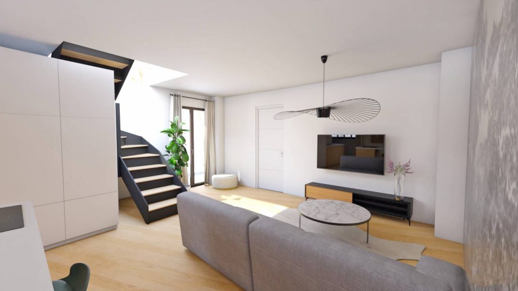 Un duplex, c’est un appartement réparti sur deux étages reliés par un escalier intérieur. Dans les programmes neufs, on en trouve souvent au dernier étage (on parle alors de duplex de toit, parfois avec une terrasse panoramique) ou en rez‑de‑chaussée surélevé. Certains duplex peuvent même occuper deux niveaux au milieu de l’immeuble, mais c’est plus rare.